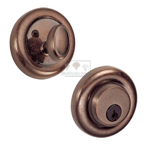 Traditional contoured radius single deadbolt lock in antique copper Overview